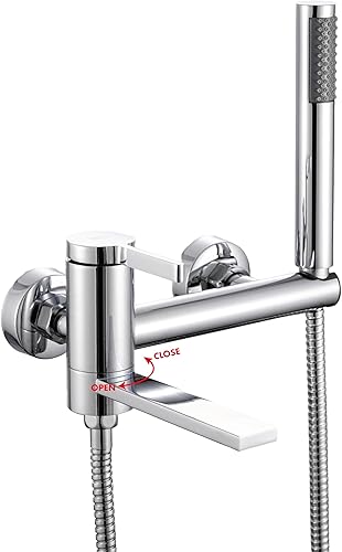 Rubinetto vasca doccia 5 anni di garanzia acciaio inox cromato lucido modello EDSS 5555 BSCR con telefono a mano con flessibile da 175 cm facile installazione risparmio d'acqua alta