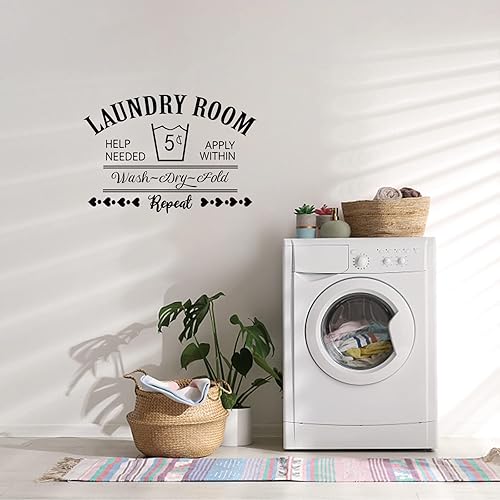 Adesivo da Parete per Lavanderia Lavaggio A Sci Sono Piega Murales Adesivo Vinile da Muro Decorazione Lavanderia Adesivo Murali Segno per La Casa Lavatrice Asciugatrice Nero