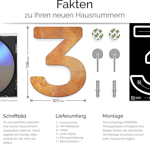 Numero civico vintage 3 - resistente alle intemperie - compreso il materiale di montaggio - N.03.R