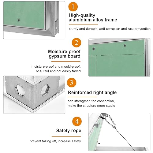 Sportello di ispezione per cartongesso, 300 x 300 mm, telaio in alluminio, per la manutenzione di pareti, soffitti e ambienti umidi