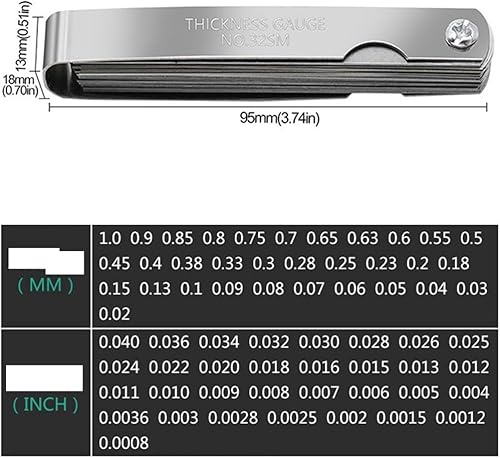 Set spessimetri per regolazione del gioco valvola, 32 lame, metriche e pollici, doppia marcatura