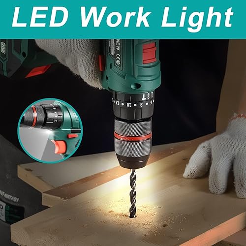 Trapano Avvitatore a Batteria con Percussione Doppia Batteria 68V 5000mAh Mandrino in Metallo da 13mm Doppia Velocità 0-350/0-1200 RPM con Luce LED + Accessori è Valigetta