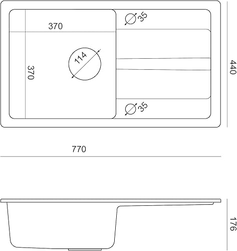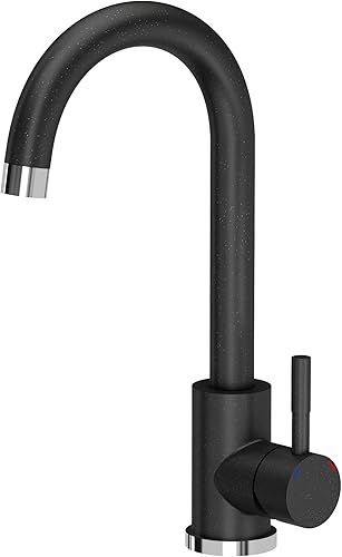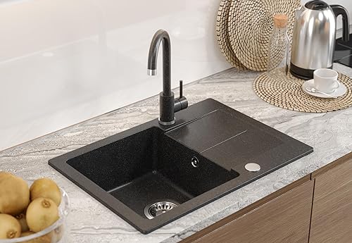 Lavello da cucina in granito | dimensioni 77 x 44 x 17,6 cm Nero | Lavello GO MAX in granito Lavello a vasca singola | Lavello da incasso con rubinetto da cucina