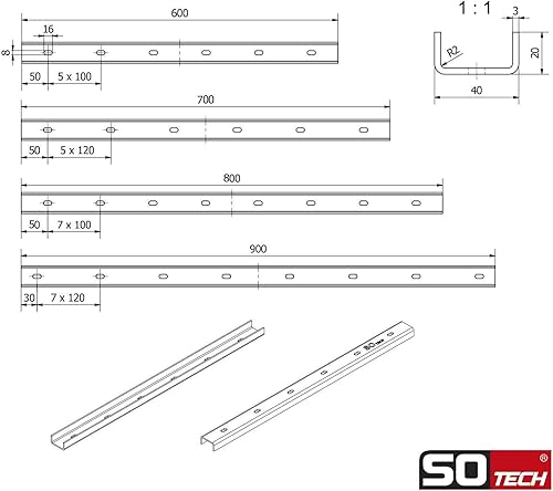 Modanature di colmo 3 pezzi a U in acciaio in look industriale 90 x 4 x 2 cm per piani di tavoli/incl. viti di fissaggio e bussole a vite Profilo di rinforzo