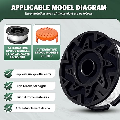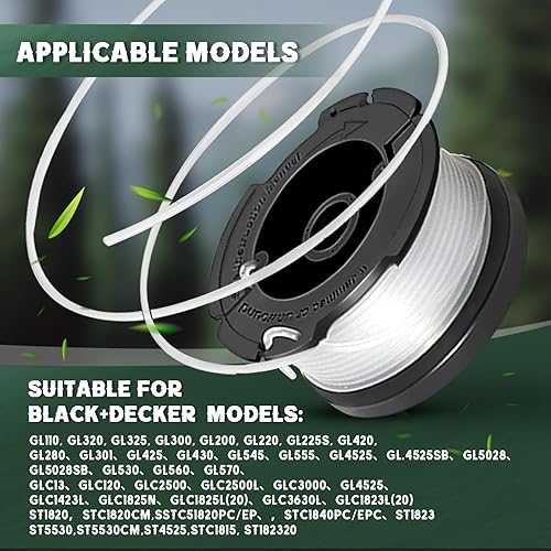 Bobina decespugliatore per Black e Decker GL110, GL320, GL325, GL300, ST1820, STC1820CM, bobina di ricambio AF-100/AF-100-3ZP/AF-100-BKP, copertura bobina RC-100-P (4 bobine + 1 tappo + 1