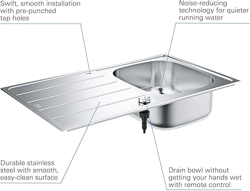 GROHE K200 | 1 vasca| Lavello da cucina - sopratop reversibile | include: piletta automatica, sifone, set di installazione | Acciaio inox |31552SD1