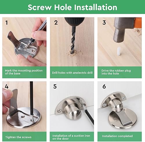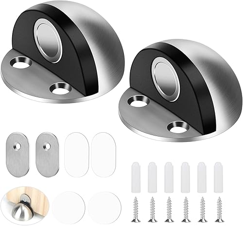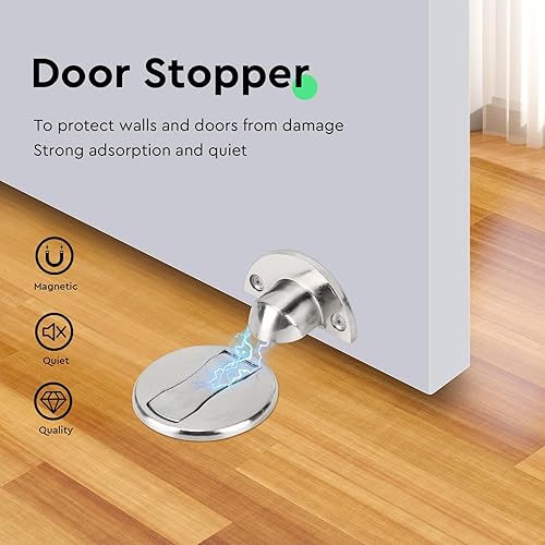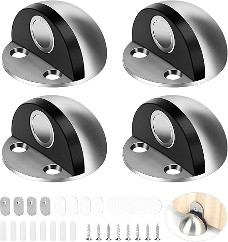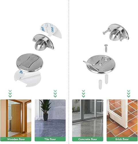 4 Pezzi Fermaporta a Pavimento Magnetico, Fermaporta Adesivo in Lega di Zinco, con Adesivo e Viti, Per Proteggere Pareti e Porte da Eventuali Danni