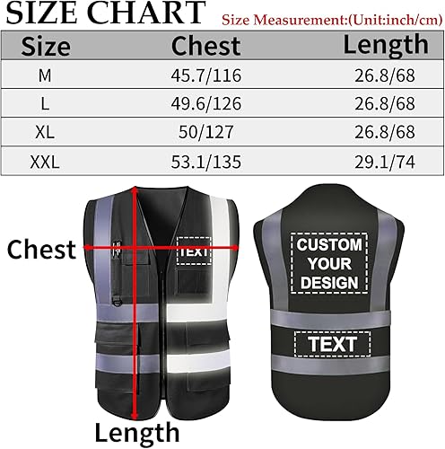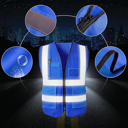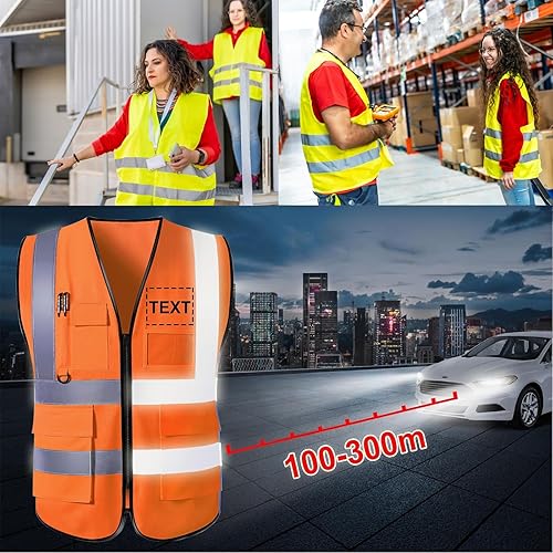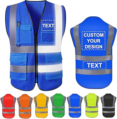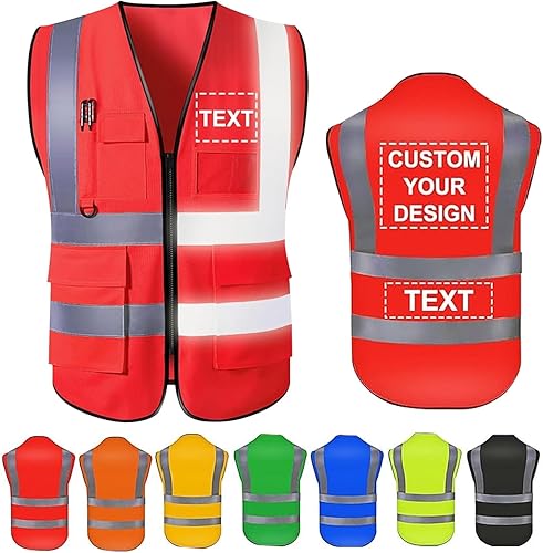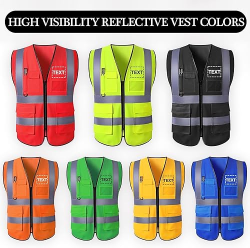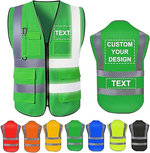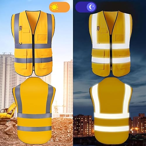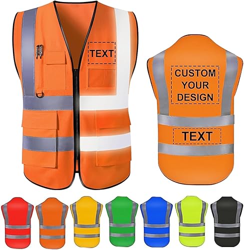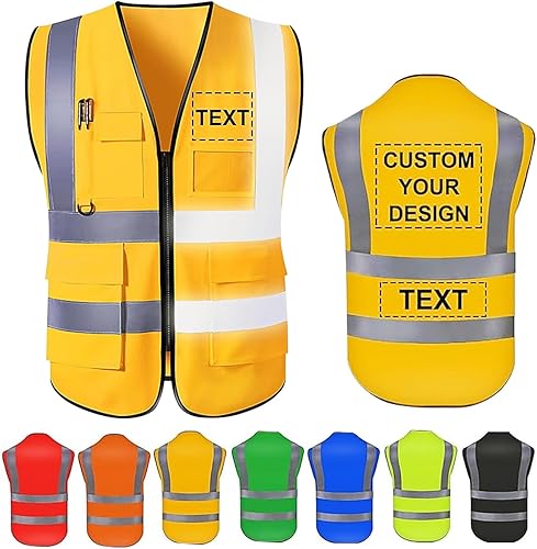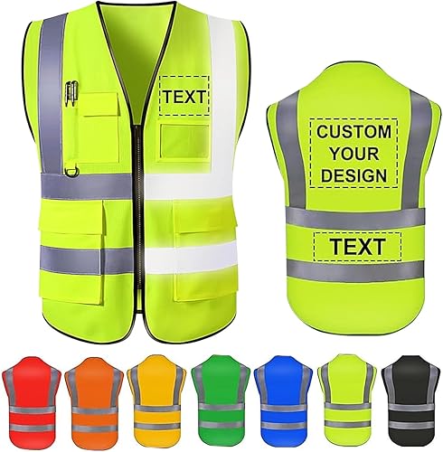 Gilet Hi Vis personalizzato con cerniera,5 tasche inclusa la tasca per carta d'identità e telefono, sicurezza riflettente ad alta visibilità per uomini e donne in diversi colori e taglie