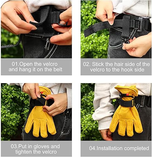 2 Pezzi Porta Guanto, Porta Guanti Cinturone, Guanti da Lavoro, Portaguanti Cinturone, Clip per Giardini, Cantieri(Nero)