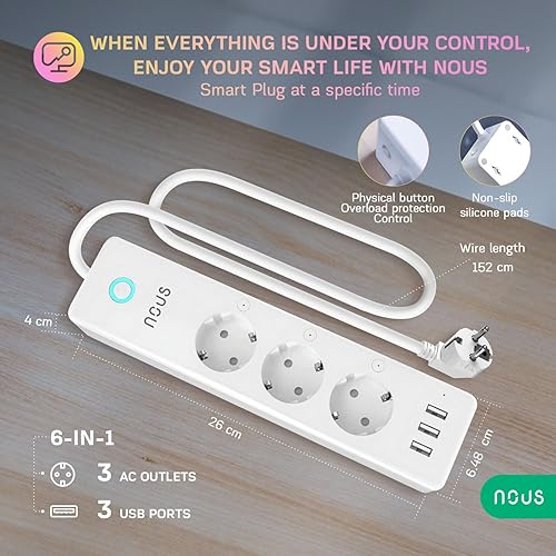 Ciabatta Smart Alexa con 3 usb, misuratore di consumo elettrico, protezione sovratensione, 15A interruttori indipendenti. Google Home, Tuya, presa intelligente wifi, multipresa da scrivania