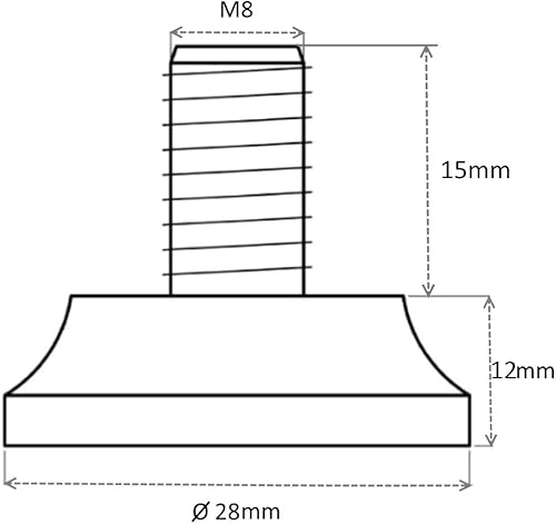 C42428-4 piedini regolabili M8, da avvitare, diametro 28 mm, altezza 12 mm, colore: Nero