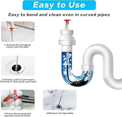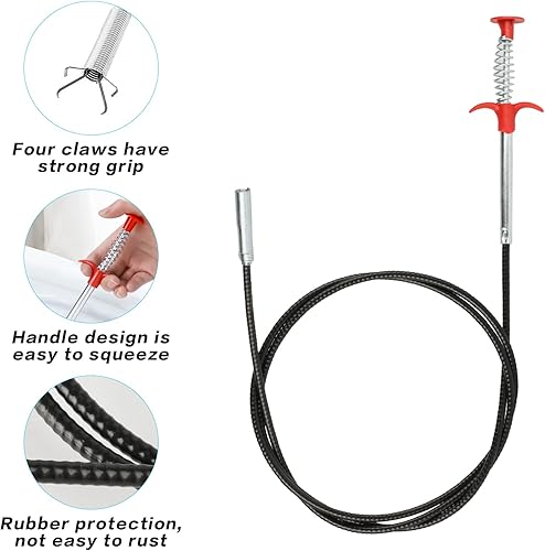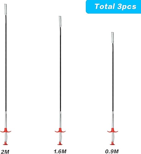 3 Pz Pinza Stura Lavandini e Scarichi, 90/160/200 cm Sonda Sturatubi Professionale, Pinza Telescopica Prendi Oggetti Flessibile, Spirale Pulizia Tubi, Stura Tubi di Scarico Doccia Cucina Bagno Fogne