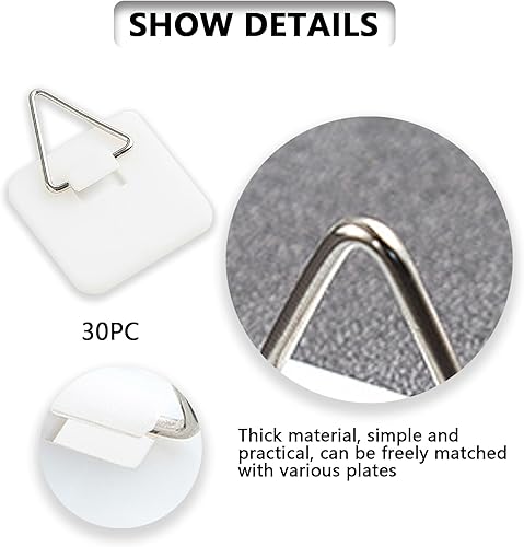 30 PCS Ganci Per Quadri Adesiv - Ganci per Piatti da Parete Multifunzione - Verticali Invisibili per Cucina, Ufficio, Bagno e Decorazioni - Resistente e Facile da Usare (grande piazza)