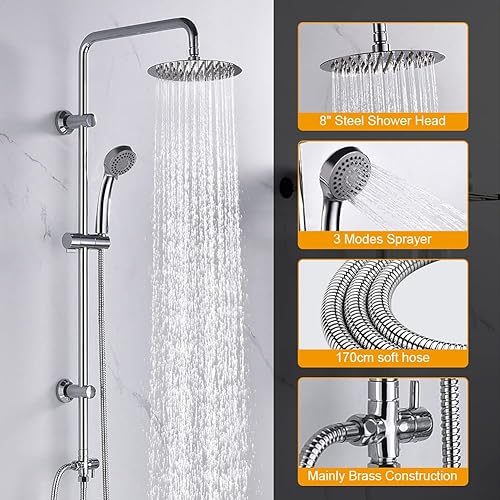 Ibergrif M20702 Sistema Docce con Deviatore, Colonna Doccia Senza Rubinetto, Cromo, Argento