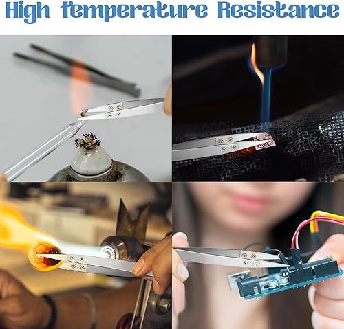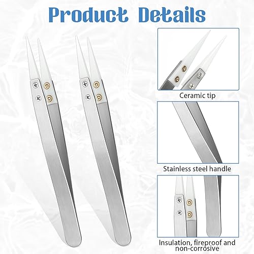 Pinzette in ceramica, 2 pinzette di precisione in acciaio inox e ceramica per elettronica, non conduttive, antistatiche, resistenti alle alte temperature, pinzette a punta fine per un funzionamento