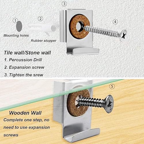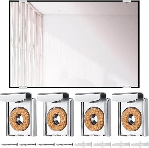 Supporto per Specchio,4 Pezzi Fissaggio per Specchio,Supporti per Specchio da Parete con Tasselli e Viti,Clip Specchio a Molla per Vetro,Specchi Pesanti