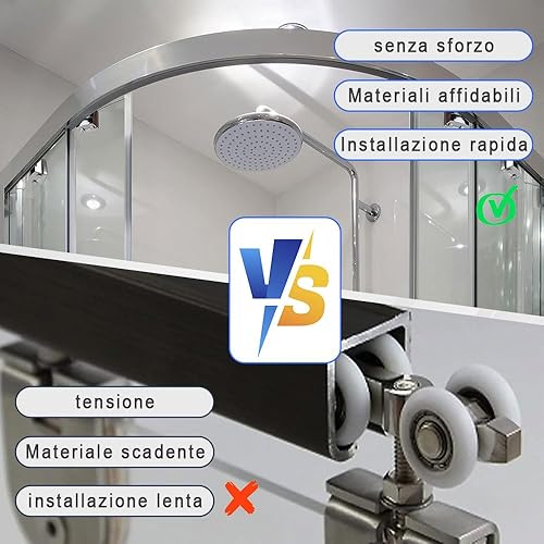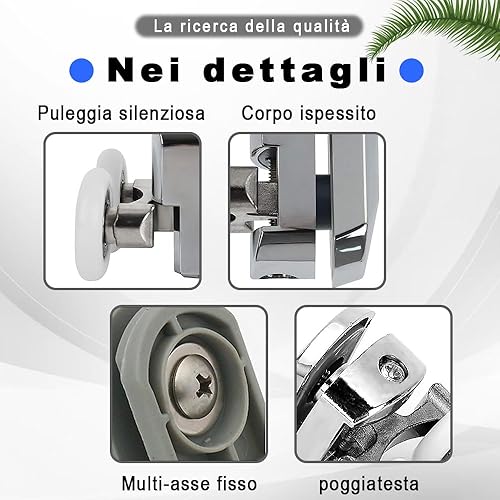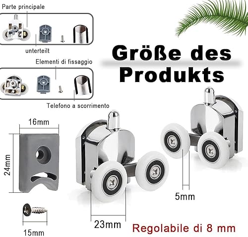 Rotelle curve per porta doccia, Per Porta Box Doccia con doppia porta scorrevole, Accessori per Box Doccia di Ricambio e Fissaggio, 2 ruote superiori + 2 ruote Silver, 23mm
