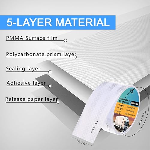 XIZAO Nastro riflettente per esterni, nastro riflettente impermeabile, nastro riflettente per la sicurezza notturna, autoadesivo, ad alta visibilità, 5 cm x 10 m, per abbigliamento da bicicletta e