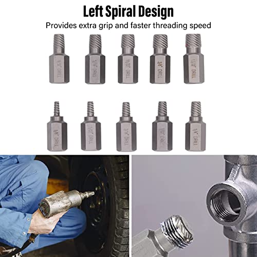 Set di Estrattori per Viti da 10 Pezzi, Set di Estrattori Multi-spline a Testa Esagonale, Estrattori in Acciaio Legato Al Cromo Molibdeno Strumento per la Rimozione di Viti Rotte