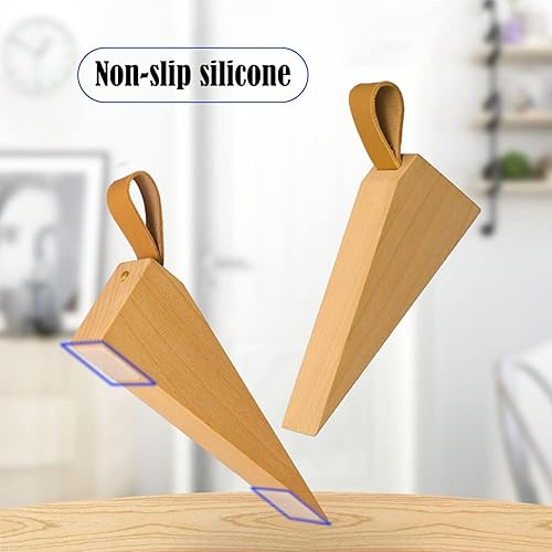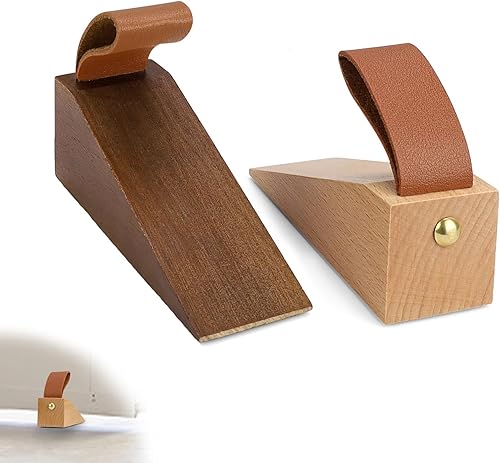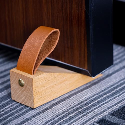 Fermaporta, 2 Pezzi Faggio Fermaporta da Pavimento con Cuscinetto in Silicone Antiscivolo, Ferma Porta da Pavimento con Manico in Pelle, Adatto per Fessure Porta da 5 a 30 MM