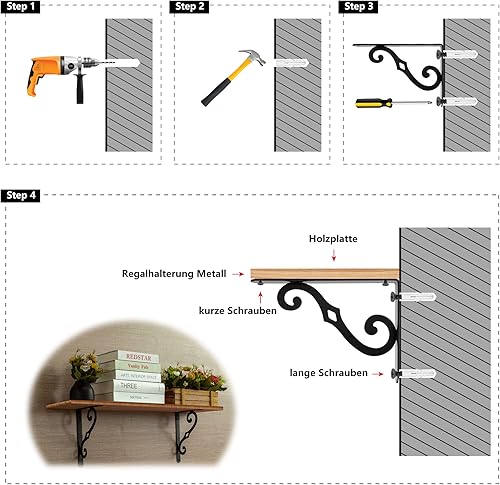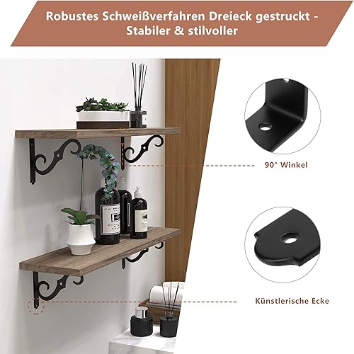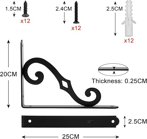 Supporto per mensola, 250 x 200 mm, decorativo, da parete, per carichi pesanti, in metallo, angolo di 90°, con viti, nero (6 PCS)