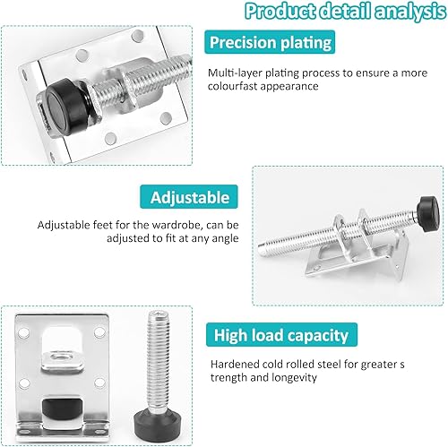 8 Pezzi set da Piedini Regolabili per Mobili, 55/102 mm Piedini per Mobili Regolabili con 48 Piccole Viti, Acciaio Inossidabile Antiscivolo Piedini Regolabili per Mobili, Tavoli, Mensole, Armadi
