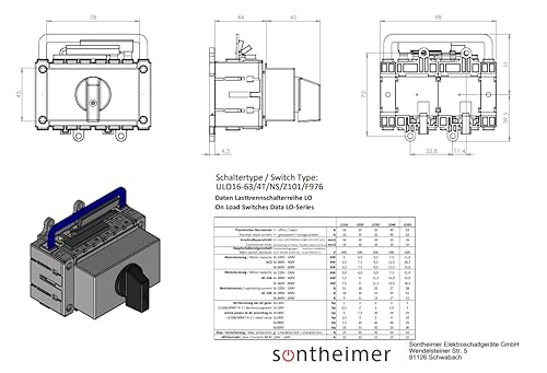 Sontheimer Commutatore 25 A, 4 poli, 11,5 kW, ULO25/4T/NS/Z101/F976, commutatore/nero, 2 x 4 x 25 A