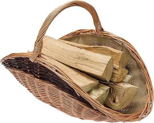 Cesto per Legna da Ardere in Vimini Con Iuta, 60 x 34 cm, Cestino per Legna