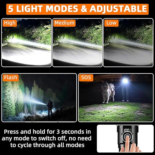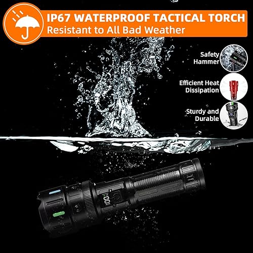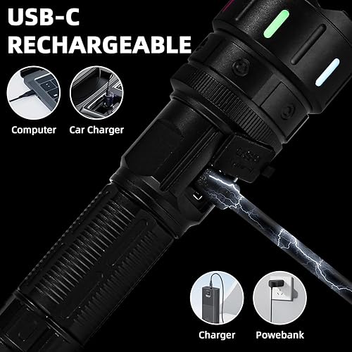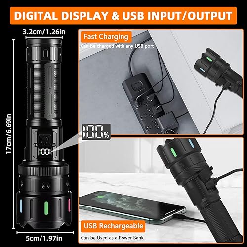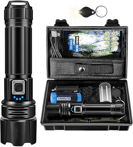 Torcia LED Potente Professionale,500000 Lumens Ricaricabile USB Torce LED Alta Potenza Con Batteria 5000mAh,XHP70.2 Tattica Militare Torcia Elettrica,IP67 Impermeabile 5 Modalità Campeggio Trekking