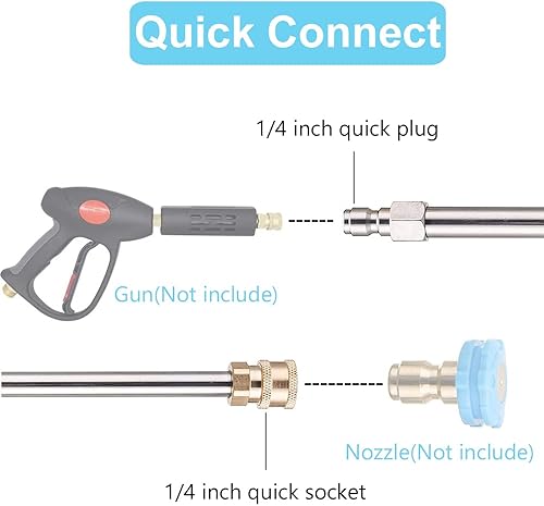 Bacchetta di Prolunga per Rondella ad Alta Pressione 2 Pezzi, 33cm Prolunga Lancia Diritte Wand 4000 PSI con Connettore Rapido da 1/4 di Pollice per Idropulitrice, Macchina per La Pulizia