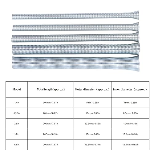 5 Pezzi Piegatubi a Molla, 5/8, 1/2, 3/8, 5/16, 1/4 Pollici Piega Tubi Curvatubi a Molla Piegatubi Manuale Piegatrice a Molla per Tubi in Rame, Alluminio, Acciaio a Parete Sottile