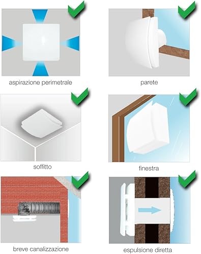 QD100 - Aspiratore assiale diam.99mm - 8W - 83m3/h, T50 IPX4, Bianco, 11.6 x 16.4 x 16.4 cm
