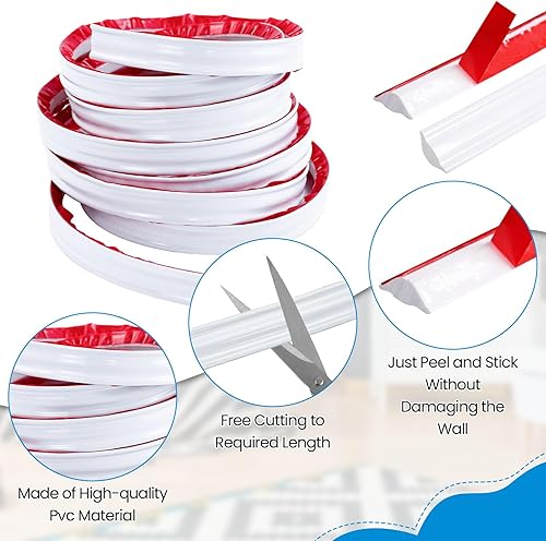 WEFHEF Modanatura Autoadesiva PVC Flessibile 3 Metri, Profilo Angolare per Cucina/Bagno, Striscia di Bordatura per Pareti/Pavimenti/Porte Finestre (19x13mm, Bianco)