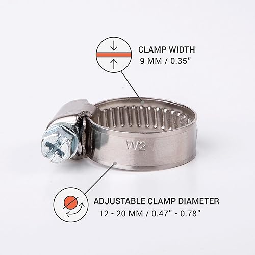 SKIR'CO Fascette stringitubo regolabili in acciaio inox da 12-20 mm, fascette stringitubo, fascette stringitubo W2, morsetti per tubi, 4 pezzi