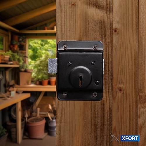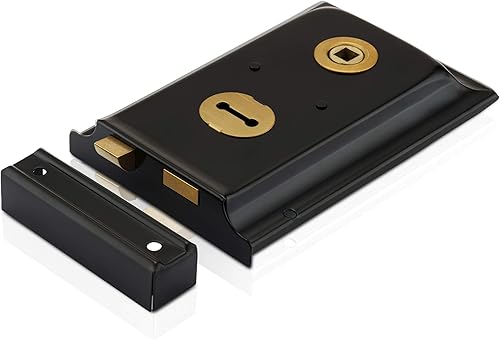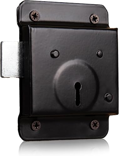 Rimlock, Sashlock A Montaggio Superficiale Con Chiavistello Integrato E Catenaccio A Chiave, Finitura Liscia, Ideale Per Porte In Legno Esterno (Nero - 100mm)
