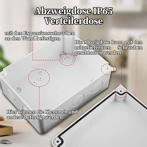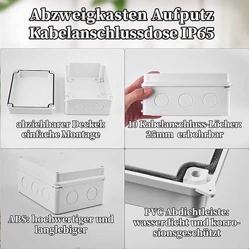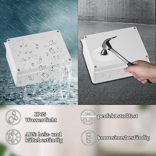 Scatola Derivazione Esterna Impermeabile IP65 15 x 11 x 7 cm, Scatola di Giunzione Elettronica da Parete Rettangolare per Giardino Cassetta Derivazione Corrente Elettrica in Casa per Cavo Ø 6–12 mm