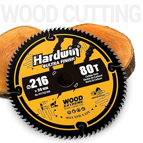Hardwin Lama per sega circolare, 216 mm, 80 denti, ATB, carburo di tungsteno, foro 30 mm, compatibile con seghe da tavolo/portatile/su rotaia
