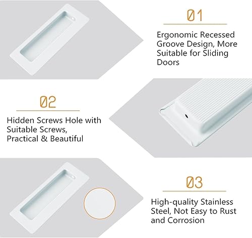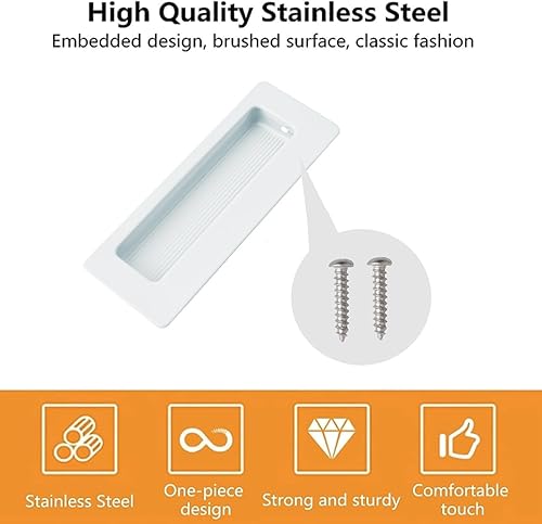 4 maniglie rettangolari da incasso a scomparsa, design incorporato, maniglie per porte scorrevoli con viti, in acciaio inossidabile, per armadi e cassetti (bianco)