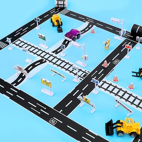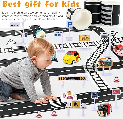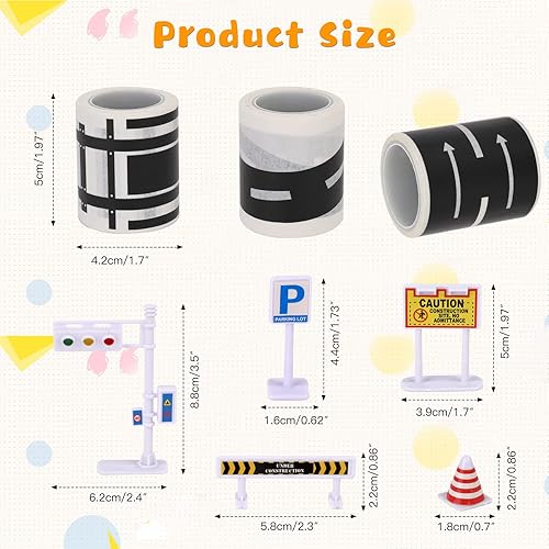 20 pezzi di segnaletica stradale, 3 nastri neri rotoli di nastro adesivo per auto da strada su pavimenti e pareti, incollare nastro rimovibile per intrattenimento