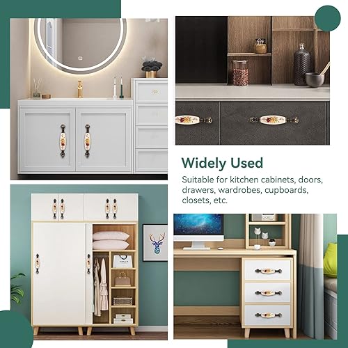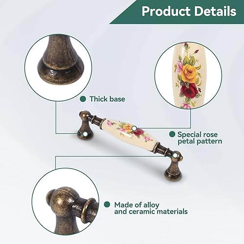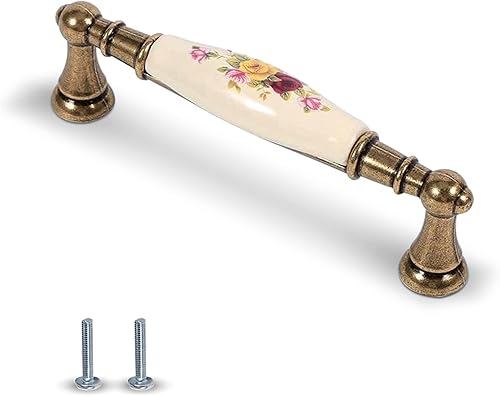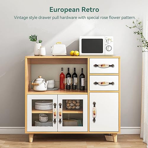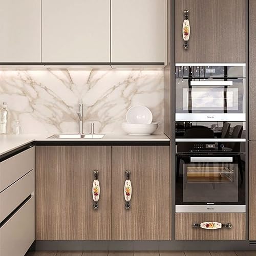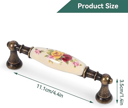 HERCHR Maniglie Antiche, Maniglie per Porte in Ceramica Vintage per Mobili, Maniglie Vintage con Motivo Floreale, 11.1×3.5cm Pomelli per Mobili Vintage per Armadietti da Cucina Cassettiera
