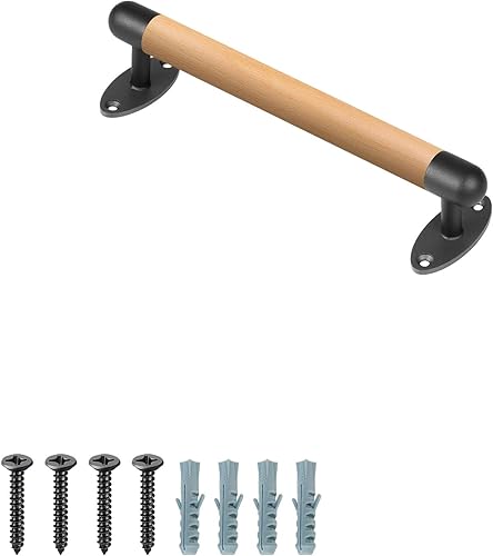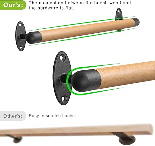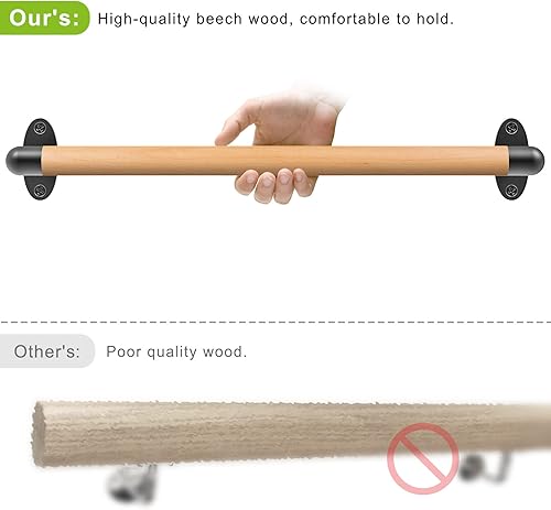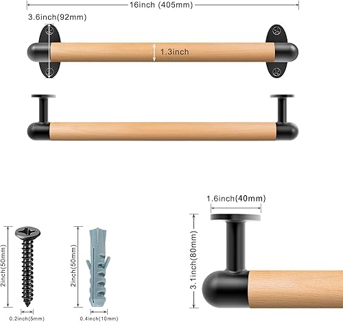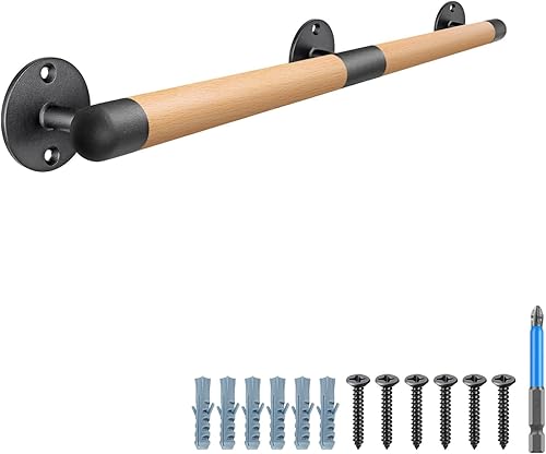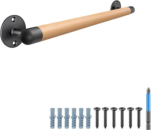 SELEWARE Corrimano in legno da 40,6 cm, per scale interne, corrimano da parete con robuste barckets in metallo, barra di sostegno per scale senza barriere per anziani, rotondo da 3,3 cm