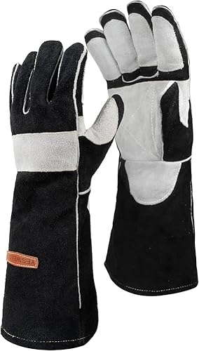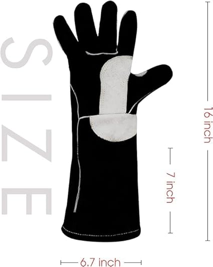 40cm, 500℃ Guanti da saldatura MIG in pelle, con cuciture in Kevlar resistenti al calore/al fuoco, rinforzi sul palmo, nero-grigio