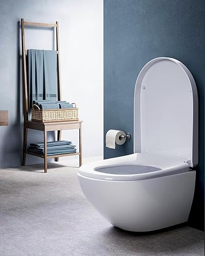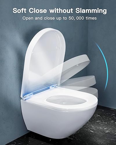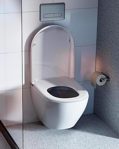 Sedili WC, copriwater universal, Urea-formaldeide, Chiusura Ammortizzata tavoletta wc con Sgancio Rapido a un Pulsante, facile da montare, Fissaggio Superiore, a Forma di U