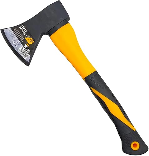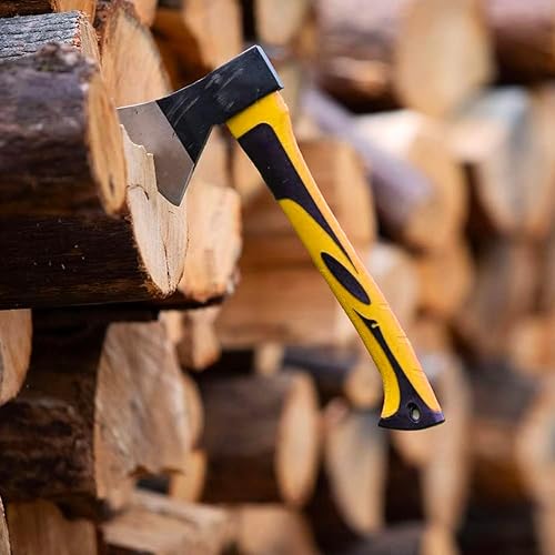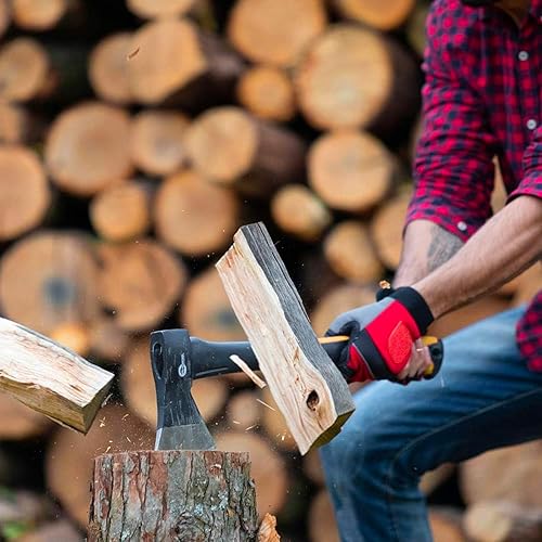 Avilia Ascia Spaccalegna con Manico in Fibra - Accetta per Giardinaggio e Lavorazione del Legno, in Acciaio al Carbonio e Manico Antiscivolo, 600gr, 37cm
