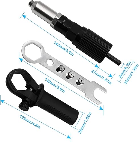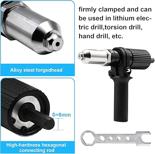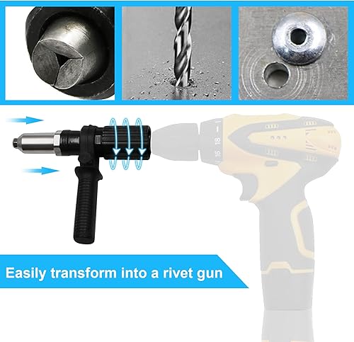 Adattatore per pistola per rivetti elettrico Adattatore per trapano rivettatore Strumento per dadi per inserti rivetti con testa del rivetto di diametro 2,4/3,2/4,0/4,8 mm
