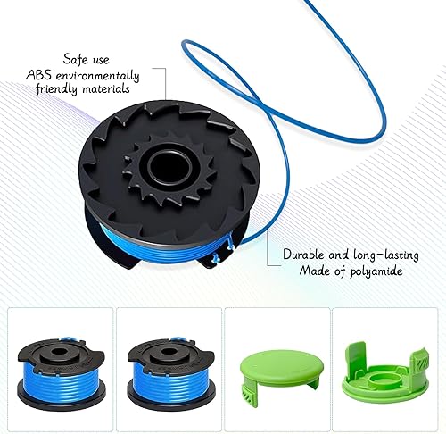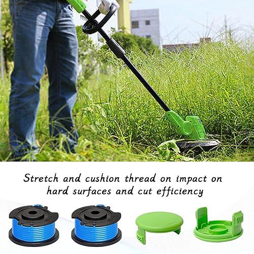 Bobine di filo di ricambio per Greenworks 29252/29092, per Greenworks 18 V/24 V/40 V/60 V/80 V, per copertura bobina Greenworks 3411546A-6 (4 bobine + 1 tappo)