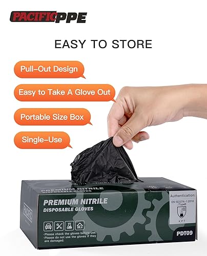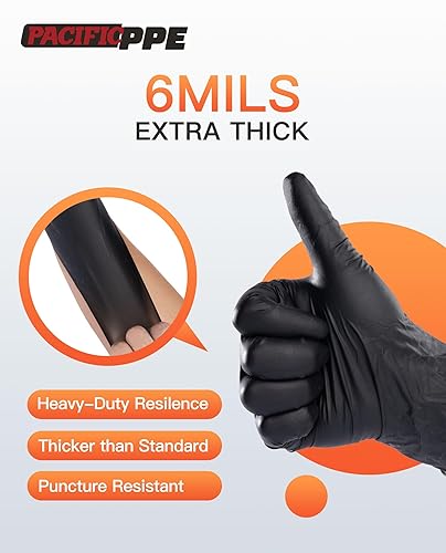 PACIFIC 6 gr. Guanti Monouso In Nitrile Nero, 60% Più Spessi Di 3,5 gr., Per Cucina, Catering, Meccanici, Tatuatori, Estetisti, Senza Lattice, Senza Polvere, EN 374, M/8