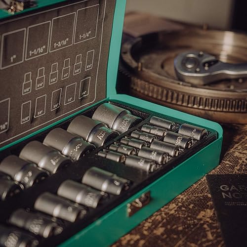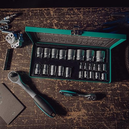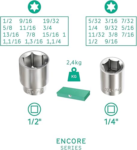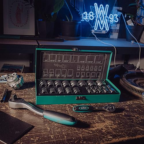 Set di bussole da 1/4 & 1/2 di pollice 24pz di WIESEMANN 1893 I Set di dadi nelle misure 5/32'-9/16 di pollice I Della serie ENCORE I Con pratica valigetta portautensili I 81512