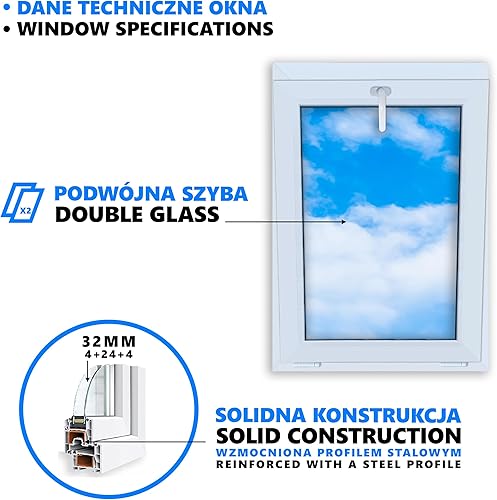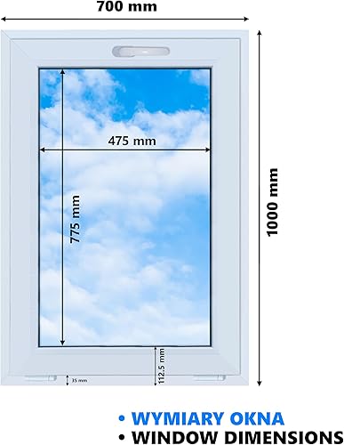 Finestra in PVC bianca 700x1000 mm, basculante, finestra standard con vetro doppio, a risparmio energetico, finestra per cantina con certificazione CE, ideale per ambienti domestici e cantine