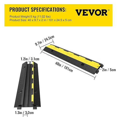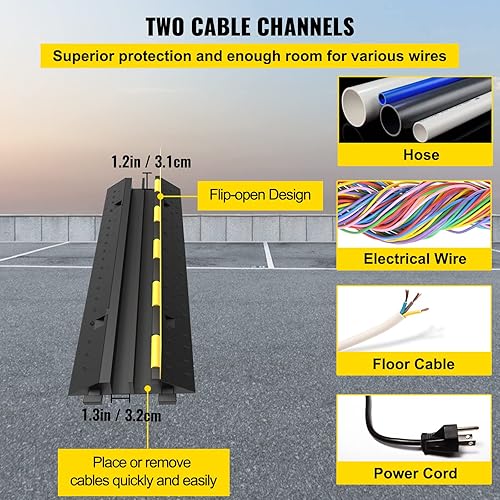 VEVOR Protezione del Cavo in Gomma Canali, Copertura di Protezione del Cavo in Gomma, per Collisione di Ingranaggi Conici 2 Canali di Protezione del Cavo da 2 Tonnellate per Cavi Alari 3Pics